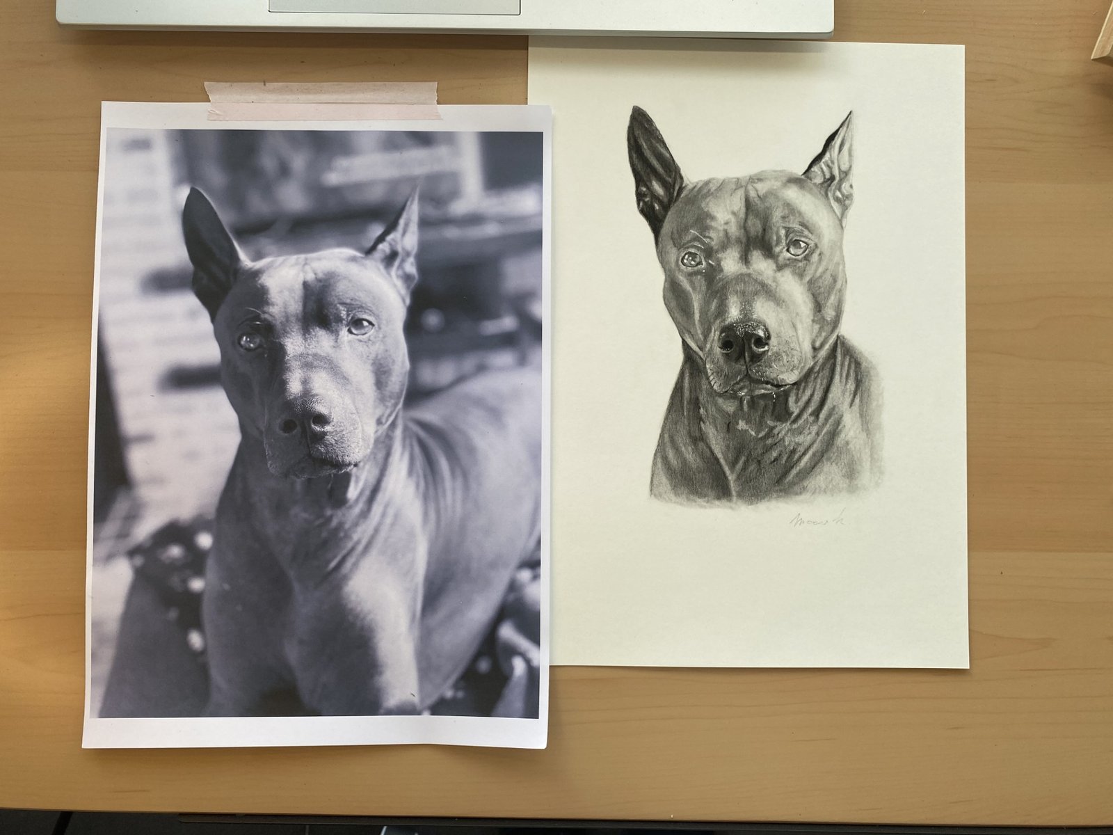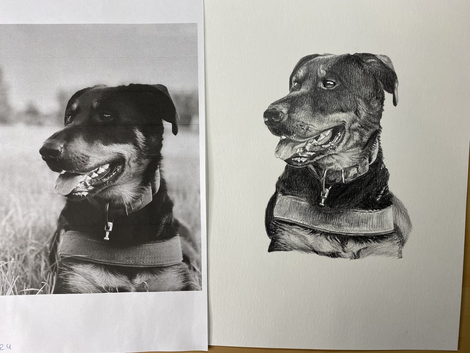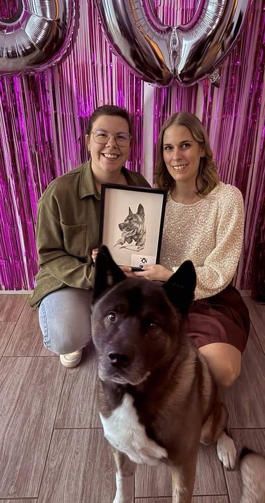 ”Ik ken Heidi al sinds mijn kindertijd, Heidi was mijn buurmeisje, maar wist niet dat zij zo mooi kon tekenen. Ik had al een paar foto’s zien passeren van de kaartjes die ze maakte. Ace, mijn prachtige hond, moest met spoed naar de dierenkliniek want hij had een milttorsie en lag op sterven, mijn hele wereld brak.. Dus had ik aan Heidi gevraagd of zij Ace wou proberen tekenen voor mij, omdat ik graag een herinnering wou voor moest hij het niet gehaald hebben. Maar gelukkig mag ik nog jaren genieten van zijn liefde, knuffels en gekheid 🤎 Ik ben zo dankbaar dat ze dit heeft gedaan voor mij en wat een prachtig resultaat, het is een kopie van Ace, ben er zo gelukkig mee en ik was sprakeloos als ik het portret de eerste keer had gezien. Heidi, ik wil je nog eens bedanken dat je dit voor mij hebt willen doen en dat Ace toch een beetje uw succes is geworden maakt mij fier! Love you ❤️”
