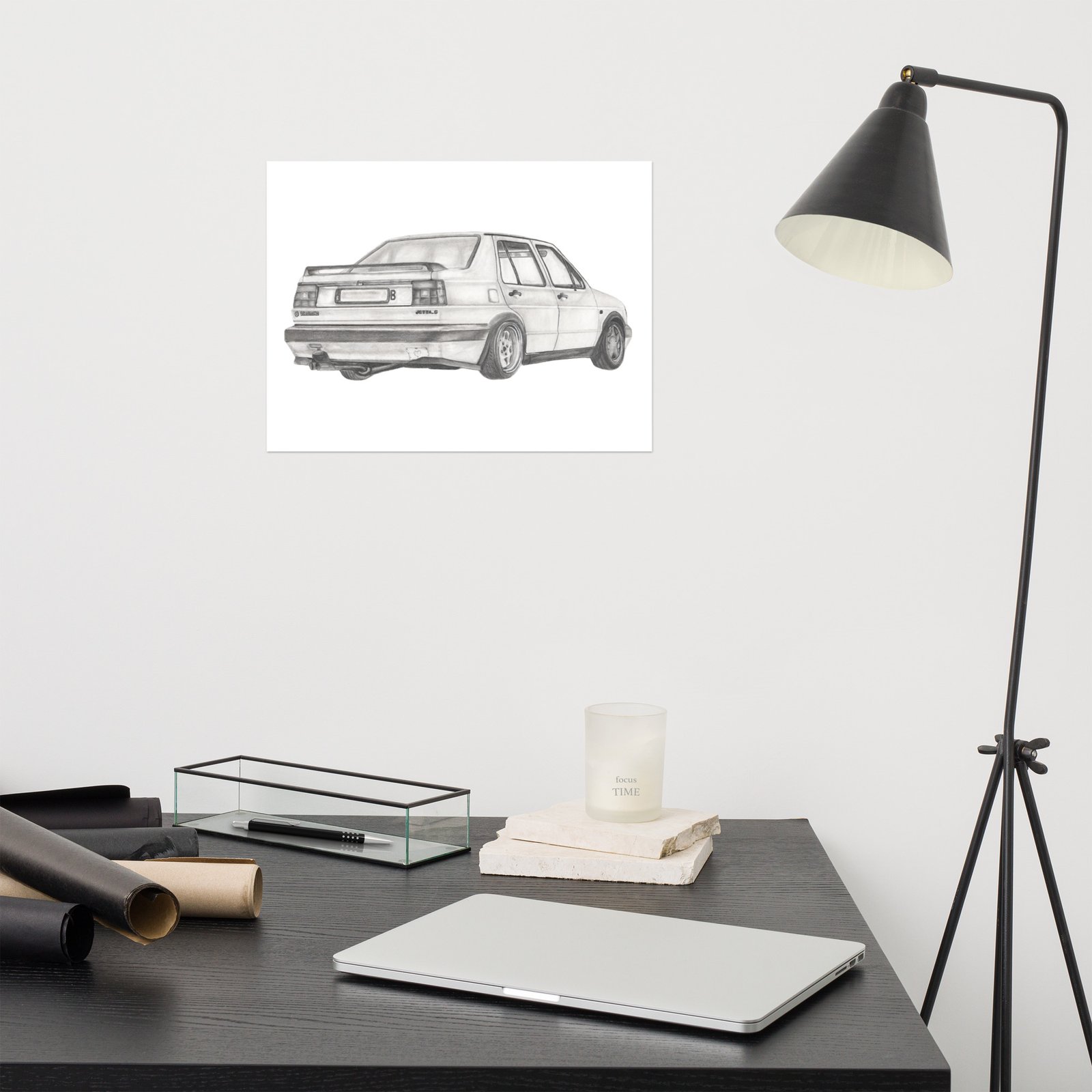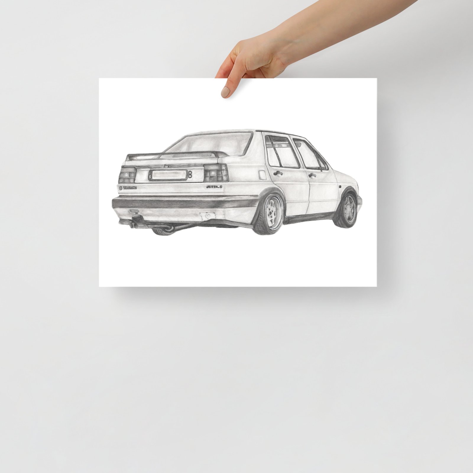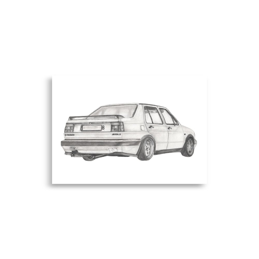 Deze kunstdruk van mijn handgetekende Volkswagen Jetta brengt een echte oldtimerklassieker tot leven. Met oog voor detail en in mijn eigen tekenstijl uitgewerkt, straalt deze print karakter en persoonlijkheid uit. De druk is beschikbaar in drie formaten: 21 x 30 cm 30 x 40 cm 42 x 59,4 cm Zo kan je precies kiezen welk formaat het beste in jouw interieur past. Of je nu een autoliefhebber bent die zijn passie wil laten zien, een uniek cadeau zoekt of een eyecatcher wilt voor in de woonkamer of mancave – deze ingelijste Jetta past perfect. ✨ Details Kunstdruk van een originele handgetekende…